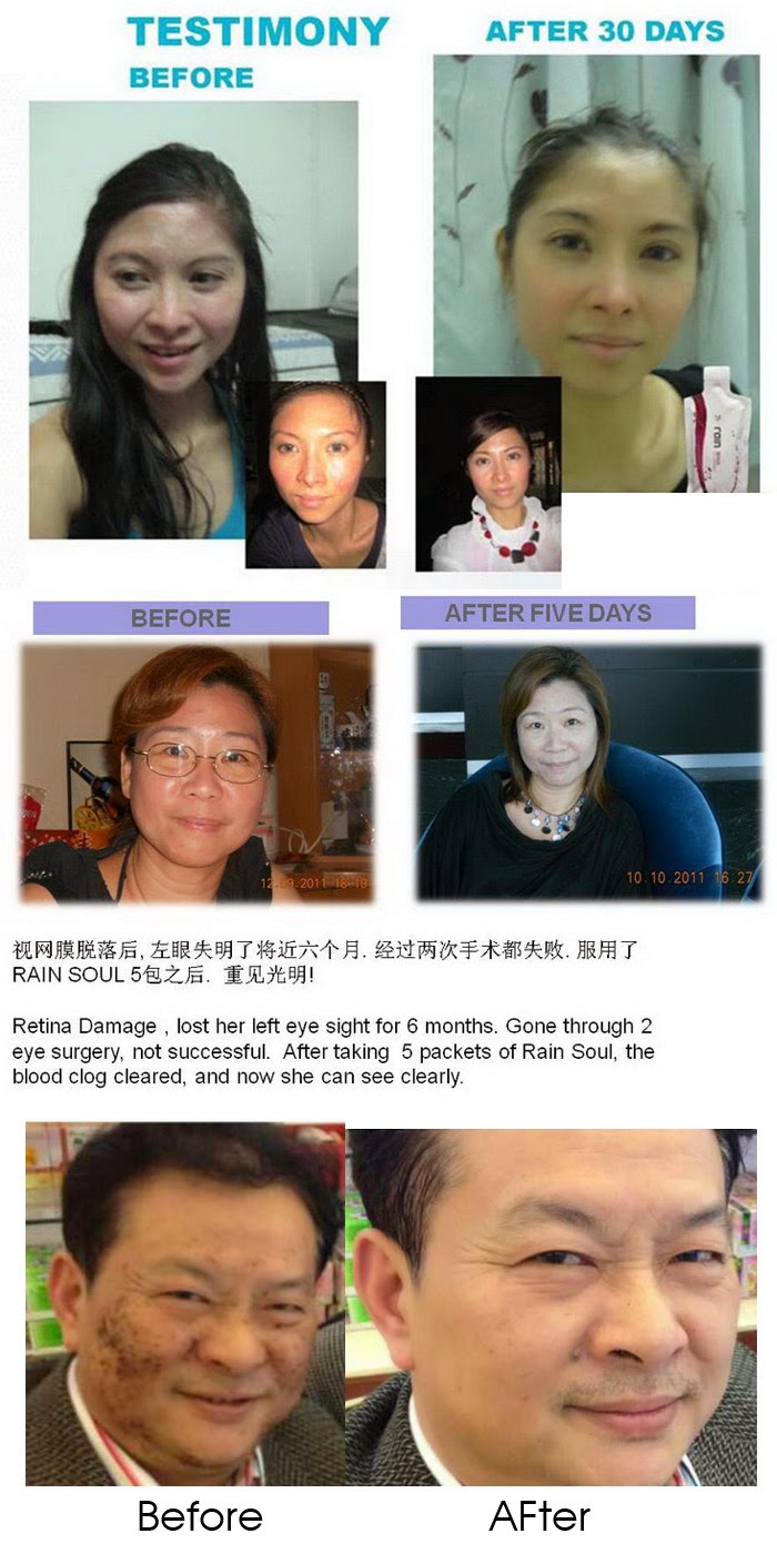 | Because Of the Rain Soul . Mr Edwin's Father found his diabetes become better and better. 因着Rain Soul,Edwin父亲的糖尿病问题改善了。当面对亲朋戚友也询问其脸色,才发现真有好转迹象。感谢天雨。 更多详情,可联络: For more Info , call EdwinLai: 014-6868758 | Eric: 通常我吃西药,敏感才沒来。那这包东西是不是有西药!?我吓了一下,生气就短讯他说这保健品骗人,这包东西有西药成份,我决定要退货。之后他找了同事打给 我,跟我再次说明,之后一天又见了Asher Chai 保 一次在从新了解,才明白了它RainSoul的功效。感谢天雨Rain Soul | MD LAI MIGRAINE赖女士-严重偏头痛 |